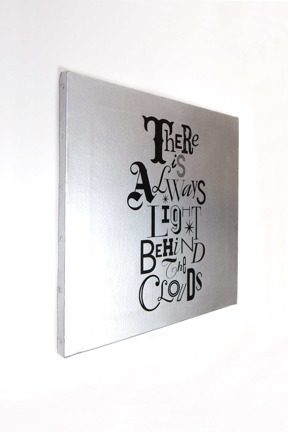 目映い光に照らされて煌めくゴールド&シルバーに塗装されたキャンバスと、手作業で丁寧にプリントされたデザイン性の高いタイポグラフィ。一期一会とも言えるそのコントラストの美しさが魅力的な少量生産の限定アート作品、「Love on Canvas」。